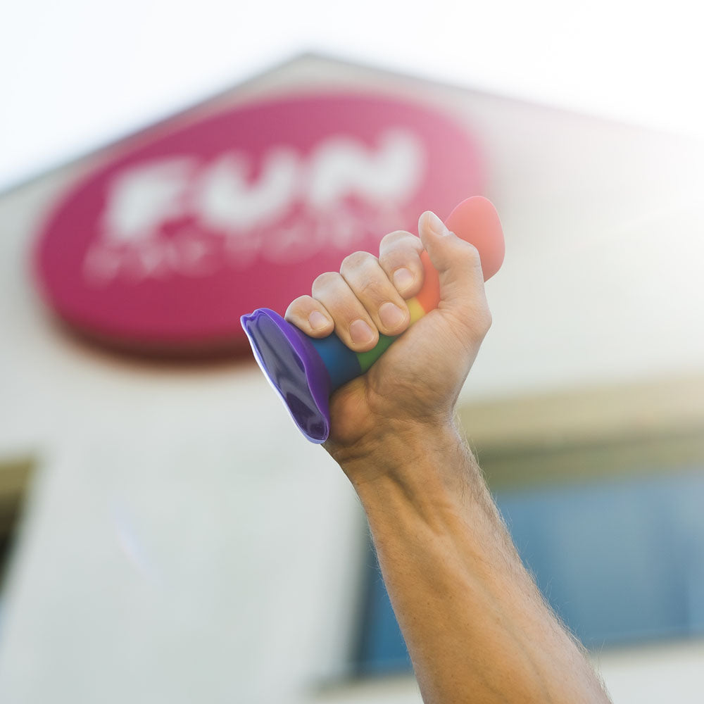 Like hot position changes and exciting strap-on FUN? Thanks to AMOR's extremely flat base, you can now get closer than ever. Plus, its curved, slightly enlarged toy tip takes aim precisely at your G-spot or prostate. Supple and flexible, AMOR is tons of FUN, whether you’re playing with the rainbow-colored Pride edition or a single-color version.