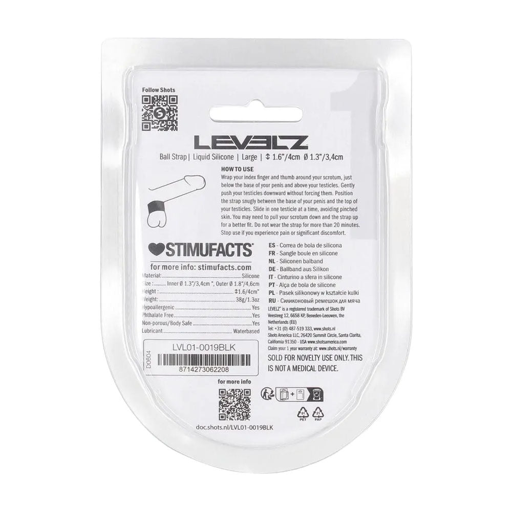 LEVELZ Liquid Silicone Ball Strap - L - Black - Black Ball Strap