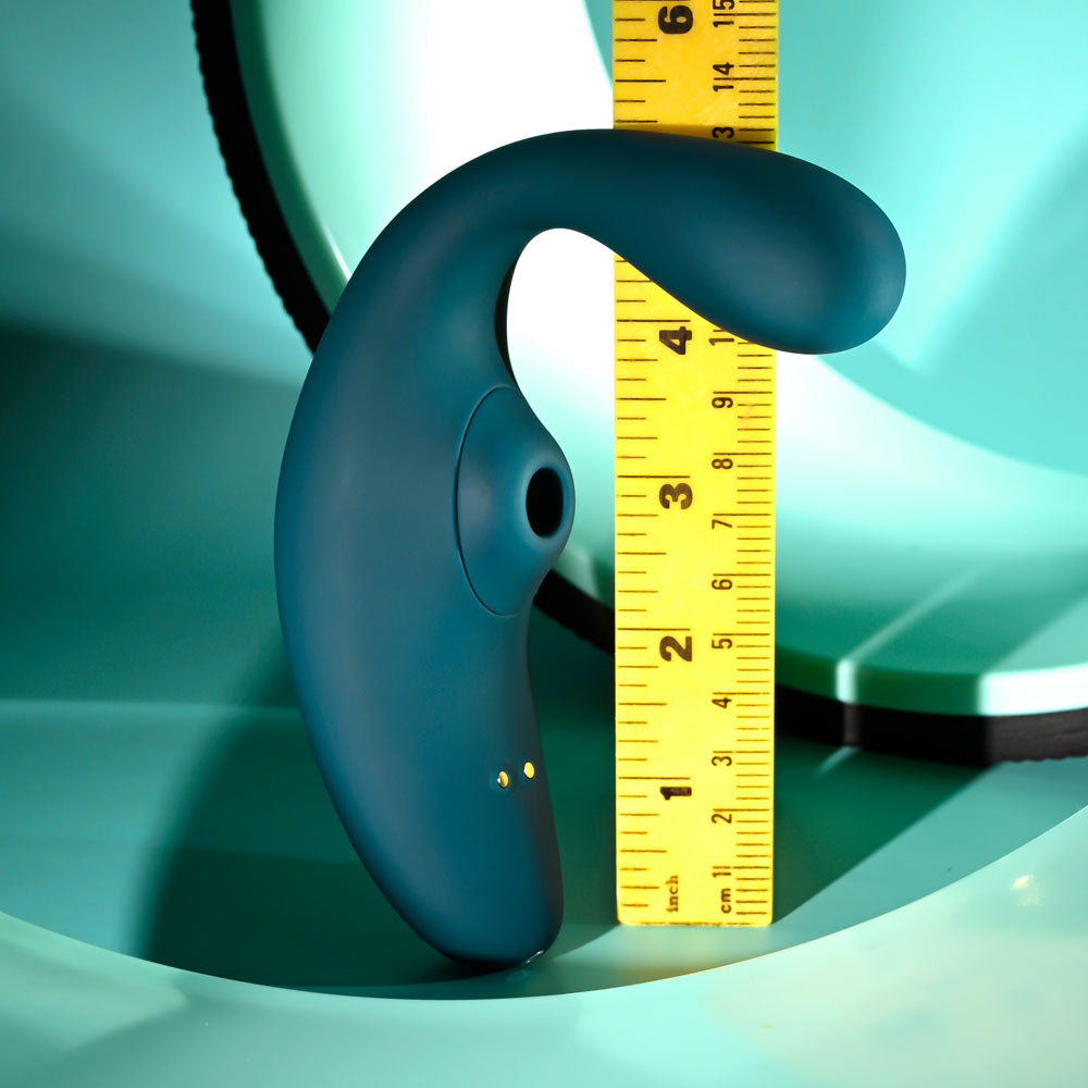 Surrender to this charming spin on the traditional dual vibrator. The Charmer lures you in with deep clitoral suction at its base, while the bulbous mini-shaft vibrates with internal waves of pleasure as it flexes to move with your body. Two independently-controlled motors intensify on demand to customize your fun.