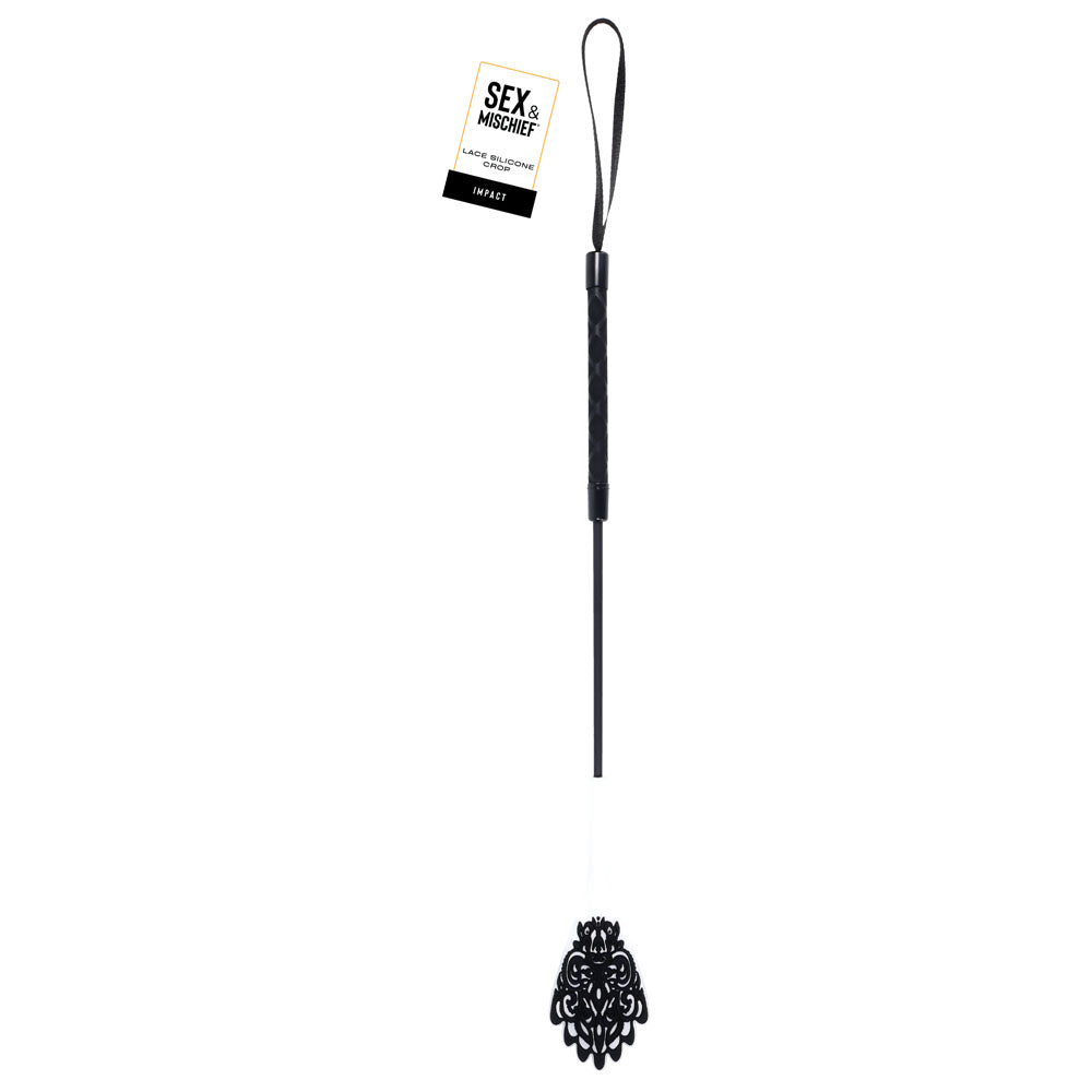 Sex & Mischief Lace Silicone Crop - Black/White 50 cm Crop Whip